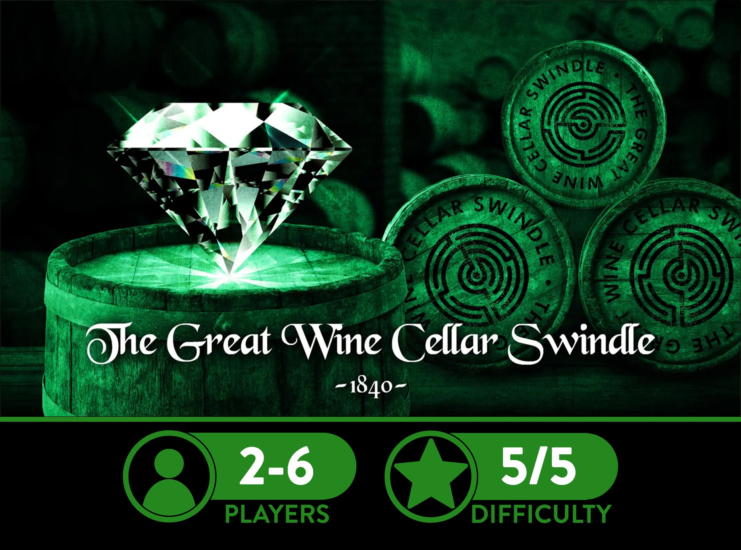 You have spiked his drink with a sedative, which knocks him out cold for 60 minutes! Enter the Wine Cellar, crack the puzzles to gain access to and steal the treasures before he wakes!